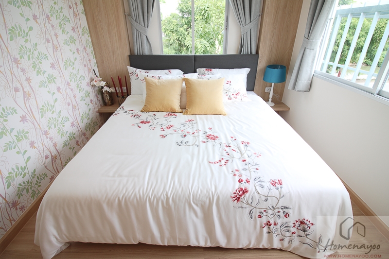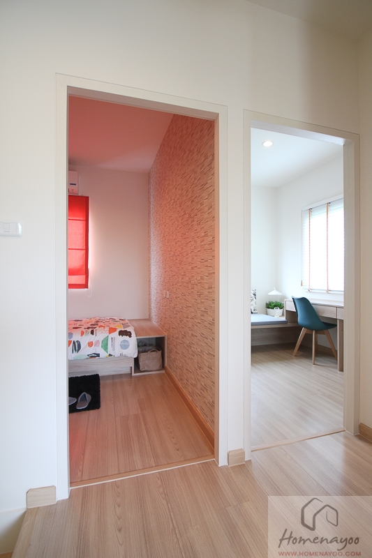มาถึงห้องนอนห้องสุดท้าย หรือห้องอเนกประสงค์นั่นเอง ตามบ้านตัวอย่างได้จัดเอาไว้เป็นห้องสำหรับนั่งเล่นและทำงาน แต่จริงๆแล้วจะจัดเป็นห้องนอนอีกห้องก็สามารถวางเฟอร์นิเจอร์ได้พอดี