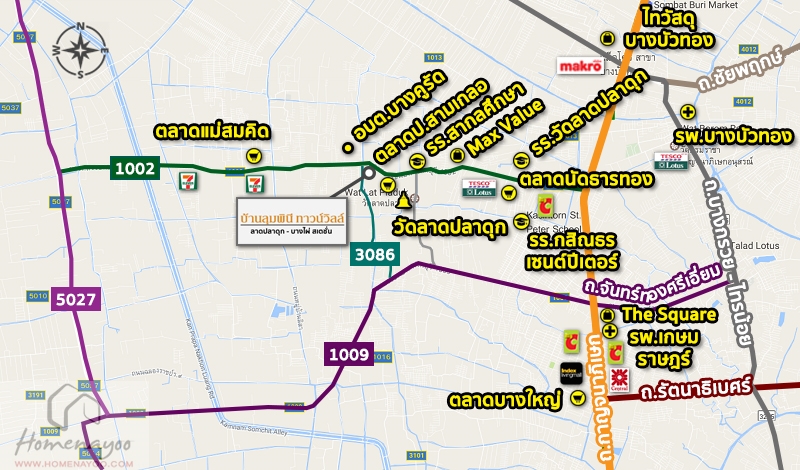 ถนนกาญจนาภิเษก > ซอยวัดลาดปลาดุก > ถนนทางหลวงชนบท นนทบุรี 3086 > โครงการ บ้านลุมพินี ทาวน์วิลล์ ลาดปลาดุก – บางไผ่ สเตชั่น