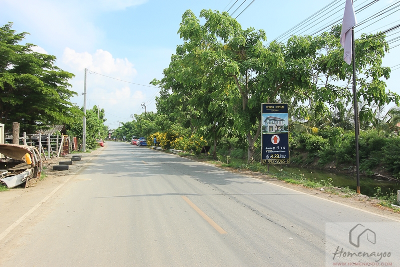 จากหน้าโครงการมองไปทางฝั่งซ้ายมือกันบ้าง ภายในถนนทางหลวงชนบท นนบบุรี 3086 ส่วนมากจะยังคงเป็นที่ดินเปล่าอยู่ค่ะ มีบ้านพักอาศัยดั้งเดิมอยู่บ้างเป็นระยะๆ
