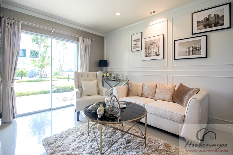 โครงการจัดแปลนบ้านแบบ Open plan ทำให้บ้านดูโปร่งโล่ง บ้านตัวอย่างจัดเฟอร์นิเจอร์และ Finishing มาให้เห็นความลงตัวในแง่ของการใช้งานและความสวยงามเพื่อเป็นไอเดีย