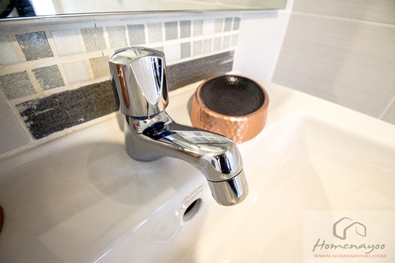 และเนื่องจากภายในห้องน้ำจะไม่มีหน้าต่างระบายอากาศมาให้ บนฝ้าเพดานจึงติดพัดลมดูดอากาศมาให้เพิ่มด้วย ยี่ห้อ Panasonic