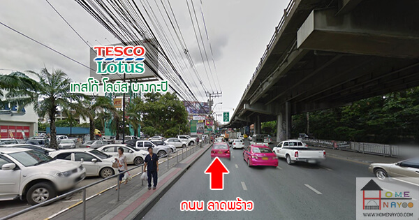 จากนั้นวิ่งตรงตาม ถนนลาดพร้าว ผ่านซ้ายมือ เทสโก้ โลตัส บางกะปิ