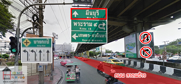 ผมเริ่มจาก ถนนลาดพร้าว มุ่งหน้าไป มีนบุรี ซ้ายมือเป็น ถนนแฮปปี้แลนด์, ขวามือเป็น เดอะมอลล์ บางกะปิ