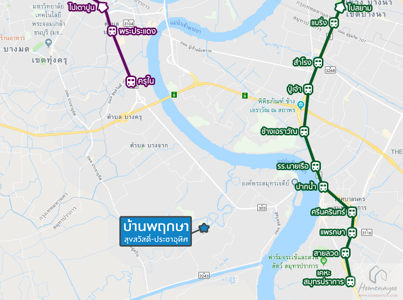 สวัสดีผู้อ่านและแฟนเพจ Homenayoo ทุกท่านครับ วันนี้ผมมีรีวิวมาฝากกันอีกเช่นเคย โดยวันนี้เป็นคิวของโครงการ บ้านพฤกษา สุขสวัสดิ์-ประชาอุทิศ ของทาง พฤกษา เรียลเอสเตท ตัวโครงการตั้งอยู่ภายในซอยวัดใหญ่ สามารถเข้าออกได้ทั้งทางถนนสุขสวัสดิ์ และถนนประชาอุทิศ ใกล้องค์พระสมุทรเจดีย์ และในอนาคตมีรถไฟฟ้าสายสีม่วงใต้ ช่วงเตาปูน-ครุใน อยู่บนแนวถนนสุขสวัสดิ์