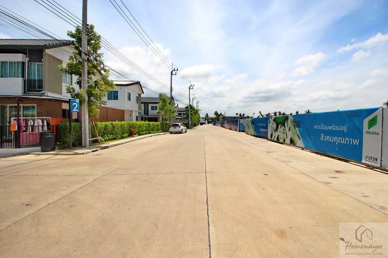 ถนนเมนของโครงการนั้นมีความกว้างอยู่ที่ 16 เมตร ทางซ้ายมือจะเป็นแนวบ้านพักอาศัยที่สร้างเสร็จแล้ว ส่วนทางขวาจะถูกล้อมรั้วเอาไว้เนื่องจากเป็นพื้นที่ก่อสร้างครับ