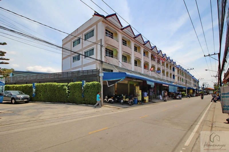 ฝั่งตรงข้ามทางเข้าโครงการเป็นอาคารพาณิชย์สูง 3 ชั้น