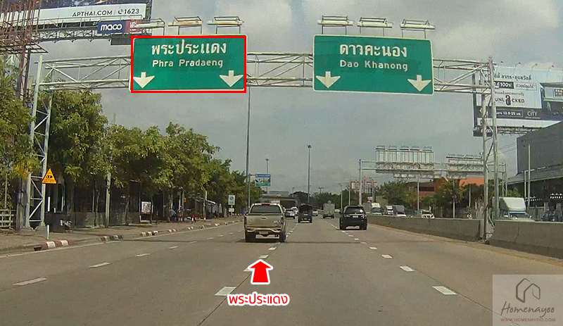พอลงจากสะพานภูมิพล เราจะเข้าสู่ถนนวงแหวนอุตสาหกรรม จากนั้นให้ชิดซ้ายเพื่อเลือกไปทางพระประแดง
