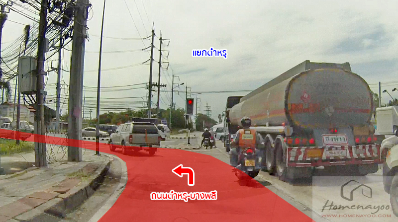เลยโลตัสมาแค่เล็กน้อยเจอกับแยกตำหรุ ให้เลี้ยวซ้ายเข้าสู่ถนนตำหรุ-บางพลี