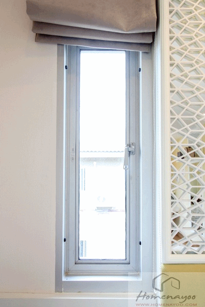หน้าต่างเป็นบานกระทุ้งด้านข้าง ถึงบานจะเล็กแต่ก็สามารถเปิดออกไปได้กว้าง