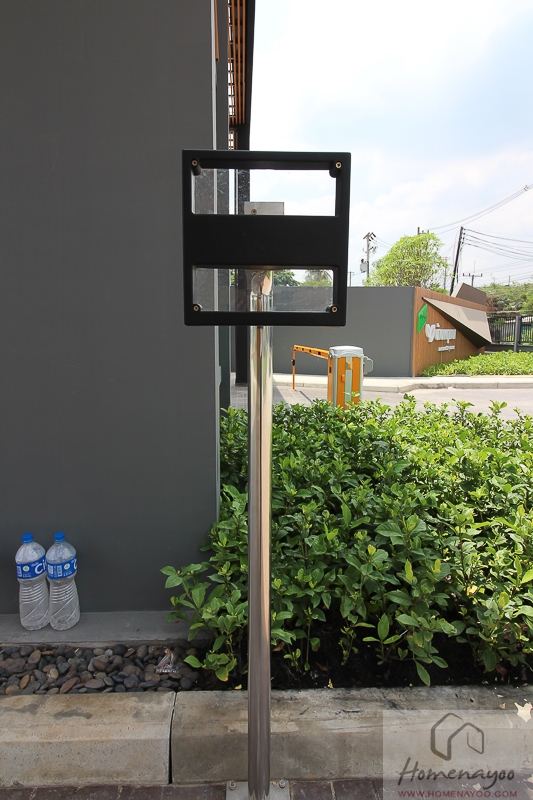 การเข้าสู่ตัวโครงการจะต้องผ่านรั้วไม้กระดก, ป้อมยาม และกล้อง CCTV ตรงนี้ลูกบ้านจะมี Access card สามารถสแกนบัตรและขับรถผ่านเข้าไปได้เลย ซุ้มโครงการจะเป็นระแนงไม้แบบเว้นร่องนะ ไม่กันฝน