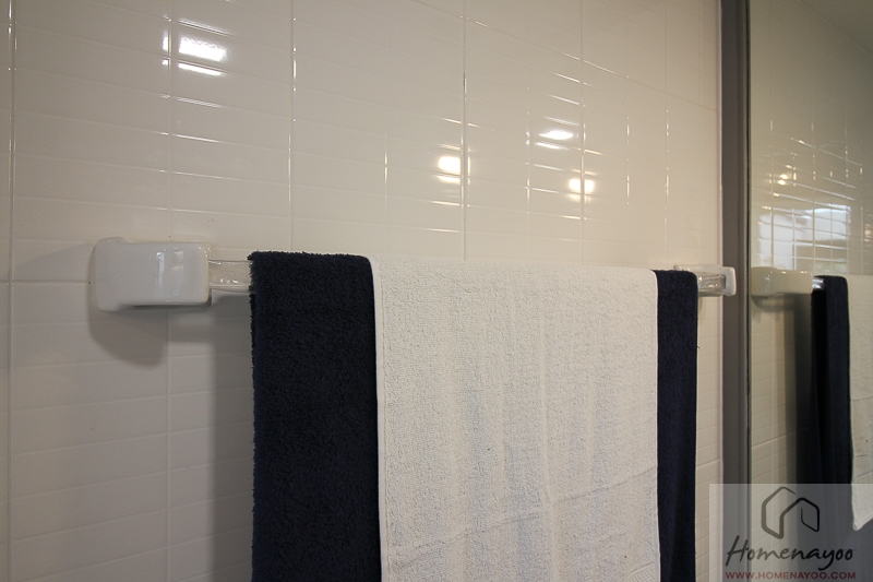 ผนังข้างๆอ่างล้างมือจะติดราวแขวนผ้าเช็ดตัวมาให้ ได้เป็นของ Karat