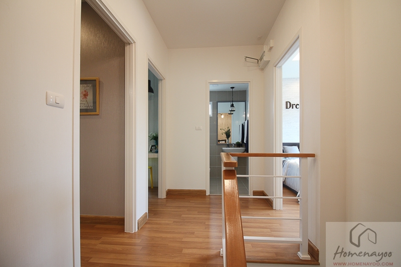 มุมมองย้อนกลับไปที่โถงบันได ฝั่งซ้ายคือห้องนอน Master bedroom ฝั่งขวาคือห้องนอน 3 และห้องนอน 2
