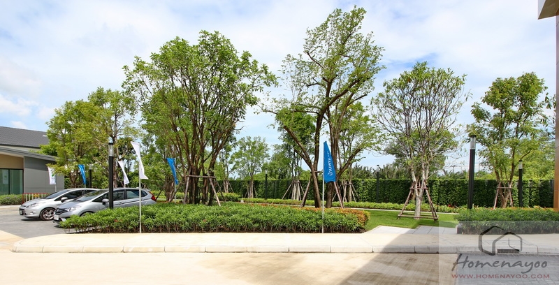 ฝั่งตรงข้ามสวนหย่อมเป็นพื้นที่ของสำนักงานขาย และบ้านตัวอย่าง