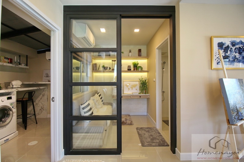 พื้นที่อเนกประสงค์ส่วนนี้ ทางโครงการมีการต่อเติมเป็นฉากบานเลื่อนให้ดูเป็นตัวอย่าง เพื่อแบ่งสัดส่วนการใช้งานให้ดูเป็นระเบียบ
