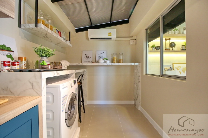ส่วนสุดท้ายของชั้นล่างที่เราจะไปดูกัน คือพื้นที่ซักล้างหลังบ้านครับ