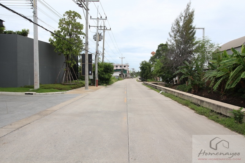 โซนบ้านพักอาศัย ถนนเมตรกว้าง 12 เมตร ด้านข้างมีทางเดินเท้าพร้อมลงต้นไม้และสนามหญ้าตลอดทาง