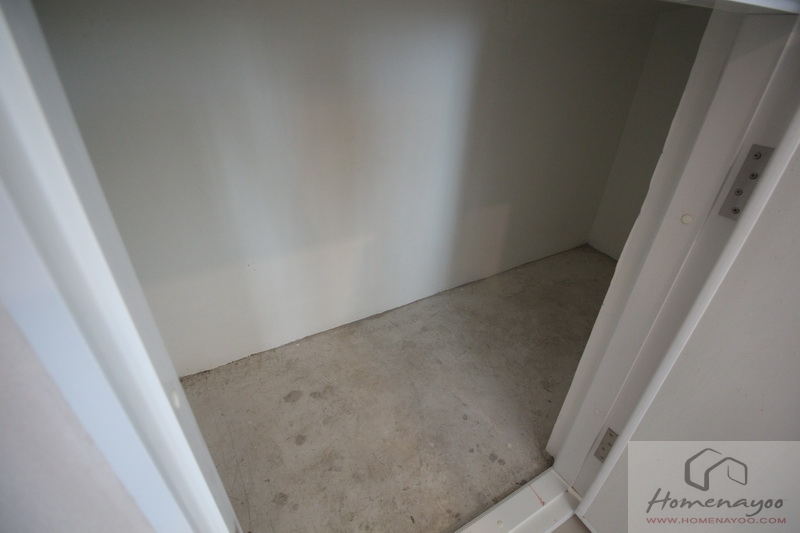 อีกฝั่งของห้องเหลือพื้นที่เพียงพอสำหรับบิลท์อินตู้เสื้อผ้าและโต๊ะอเนกประสงค์