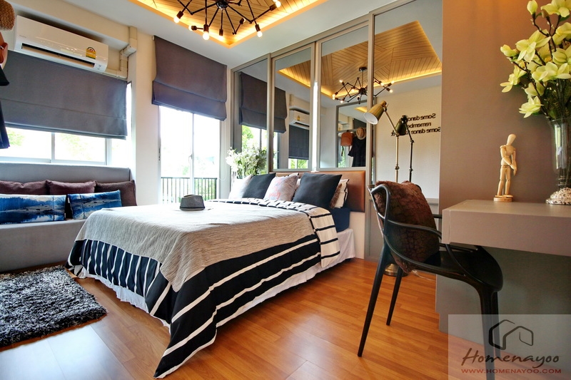 ด้วยขนาดพื้นที่มีมากที่สุดจึงนับว่าเป็นห้องนอนหลัก วางเตียงขนาด 5 ฟุตไว้เป็นตัวอย่าง
