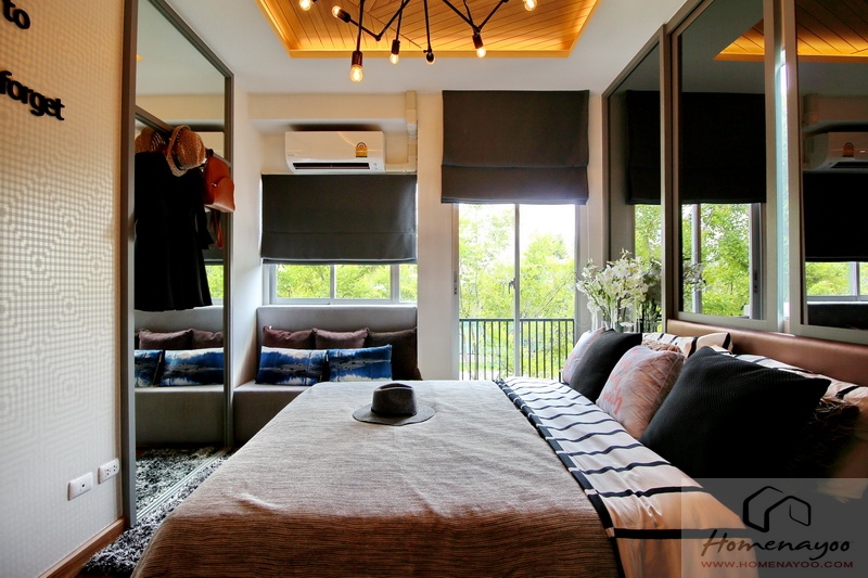 บริเวณหน้าต่างมีพื้นที่สำหรับทำเป็นมุมนั่งเล่น หรือจะปรับให้เป็นมุมทำงานก็ได้เช่นกัน