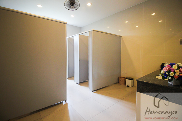 มาดูส่วนของห้องน้ำกันก่อนค่ะ ส่วนนี้จะเป็นเหมือนส่วนบริการ จะมีออฟฟิศ ห้องแม่บ้าน ห้องเก็บของและห้องน้ำ