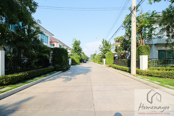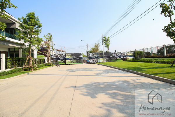 ทางเข้าออกของโครงการนี้จะมีทางเดียวคือเส้นทางเข้าออกจากถนนกรุงเทพกรีฑา เข้ามาเจอซุ้มทางเข้าหลัก และส่วนกลางหลักของโครงการ คือตัว Club House ที่มีสระว่ายน้ำและฟิตเนส จากส่วนกลางหลักเราก็จะต้องผ่านซุ้มรปภ. อีกชั้น เป็น Double Security Gate เมื่อผ่านชั้นนี้เข้ามาแล้วก็จะเข้าสู่ส่วนพักอาศัยแล้วค่ะ โดยถนนหลักด้านในจะกว้าง 12 เมตร และถนนย่อยเข้าซอยกว้าง 9 เมตร และส่วนกลางอีกจุดจะอยู่ที่ท้ายโครงการ เป็นสวนสาธารณะแนวยาว เกาะไปกับรั้วของโครงการ ได้วิวของสนามกอล์ฟ Unico และสวนหย่อมเล็กๆอีกทางฝั่งตะวันออกค่ะ