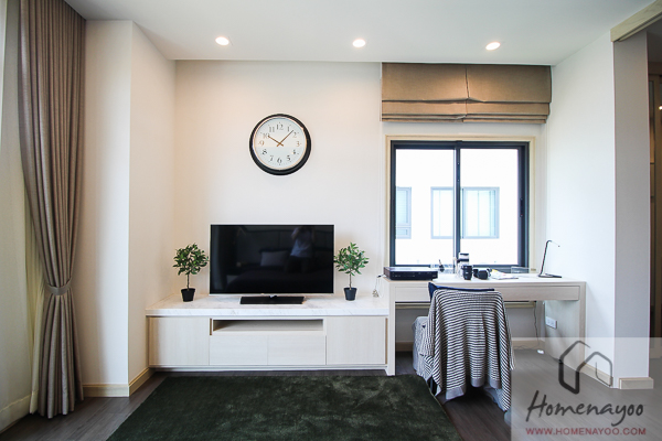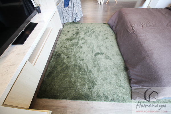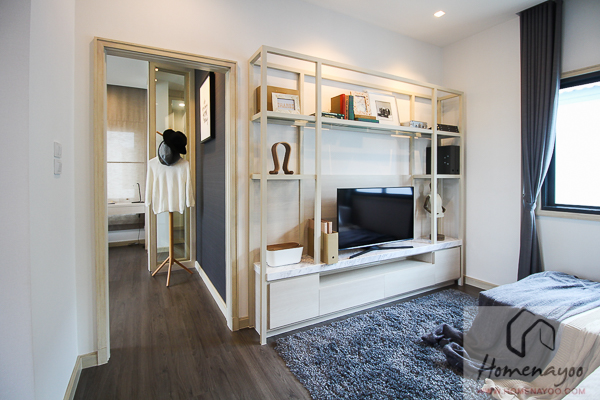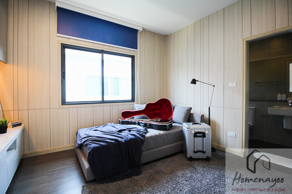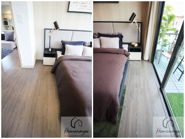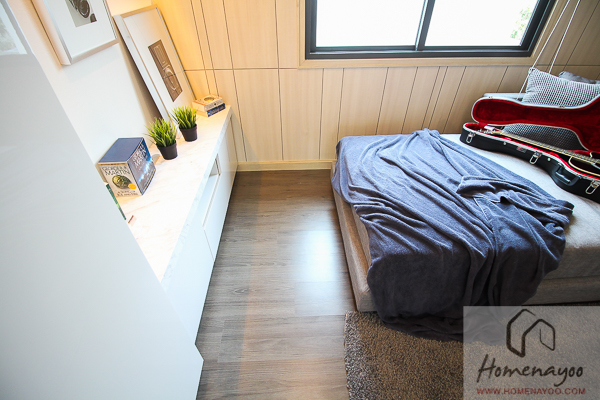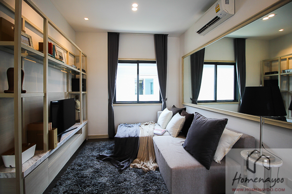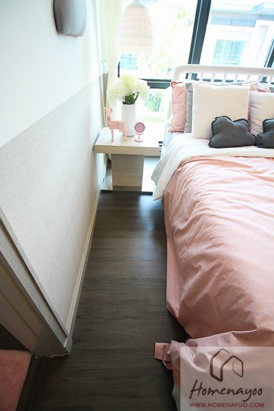 ทางโครงการวางเตียงขนาดประมาณ 3.5 ฟุต มาให้ดูเป็นตัวอย่าง ซึ่งจริงๆเราสามารถที่จะวางเตียงขนาดควีนไซส์ได้สบายๆค่ะ