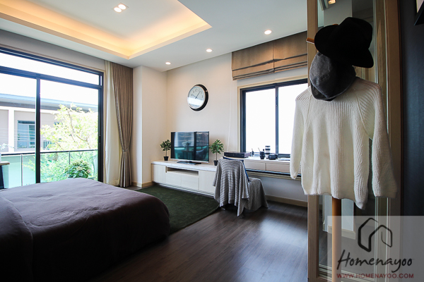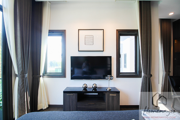 ปลายเตียงจัดเป็นตู้วางทีวี มีหน้าต่างบานกระทุ้ง 2 บาน