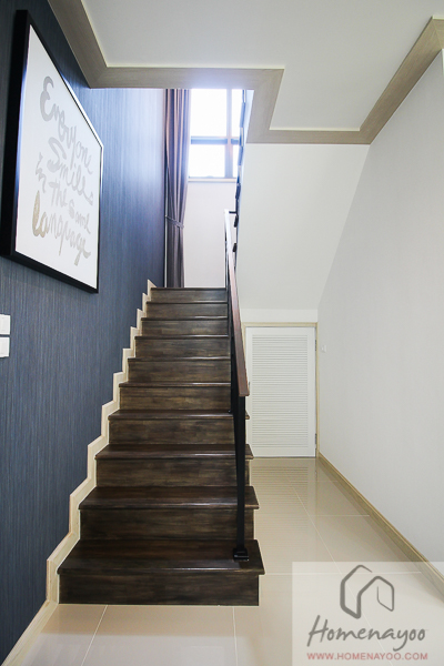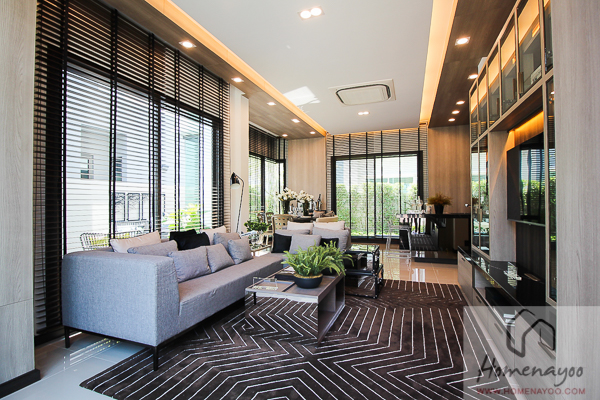 ทุกแบบเป็นการปรับแบบให้เป็นสไตล์โมเดิร์น เน้นโทนสีพื้นอย่าง เทา น้ำตาล ขาว กรอบบานกระจกใช้เป็นสีดำทั้งหมด ทำให้ลุคของบ้านดูเท่ห์ดีค่ะ ส่วนการจัดพื้นที่ใช้สอยในบ้านทำมาได้ลงตัวดี มีพื้นที่สำหรับครอบครัวเยอะ คือมีทั้งห้องนั่งเล่นขนาดใหญ่ ( Double Living Room) ที่ชั้น 1 และ Family Area บนชั้น 2 ที่ให้มาตั้งแต่บ้านตัวเล็กสุดเลยค่ะ ส่วนห้องนอนแต่ละห้องจัดมาให้มีพื้นที่ใช้สอยพอดีๆ มีห้องน้ำในตัวทุกห้อง นอกจากนั้นยังได้ครัวไทยคือครัวแบบกั้นแยกออกจากตัวบ้านทำให้กลิ่นเวลาทำอาครัวไม่ลอยฟุ้งเข้ามาในบ้านค่ะ เพดานสูง 2.6 เมตรเท่ากัน