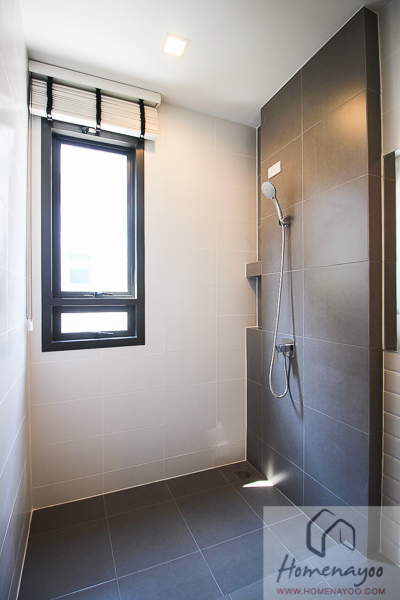 บริเวณพื้นที่อาบน้ำจะได้ช่องแสงมา 1 จุด เป็นหน้าต่างบานกระทุ้ง บานกรอบอลูมิเนียมสีดำ