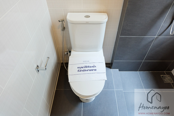 ส่วนโถสุขภัณฑ์จะอยู่อีกด้านของห้อง ใช้ของ American Standard