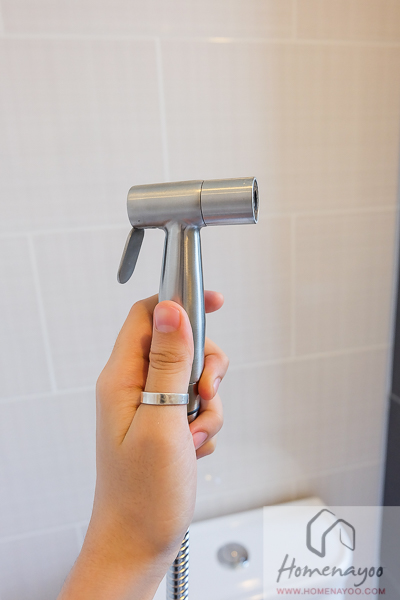 ส่วนอาบน้ำจะแยกด้วยการลดระดับพื้นลงไปประมาณ 5 ซม. ฝักบัวได้ของ American Standard แต่ไม่มี Shower Box มาให้ เราสามารถติดตั้งเองได้ไม่ยากค่ะ