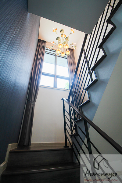 ตัวบันไดเป็นโครงเหล็กรูปพรรณ ปิดผิวด้วยไม้ joint สีตามภาพ ราวบันไดเหล็กสีดำ มีช่องแสง 1 จุด เป็นชุดหน้าต่างบานกระทุ้งและหน้าต่างบานฟิกซ์ บานกรอบอลูมิเนียมสีดำ กระจกเขียวตัดแสงค่ะ