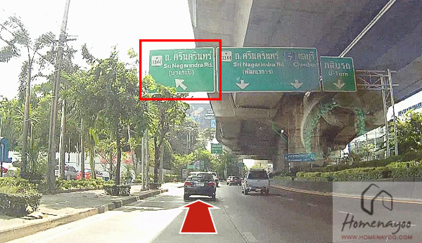 ขับตรงตามถนนศรีนครินทร์ฝั่งมุ่งหน้าบางกะปิไปเรื่อยๆ สักพักเราจะเห็นป้ายบอกทางก่อนถึงสี่แยก ให้เราเตรียมเลี้ยวขวาออกถนนกรุงเทพกรีฑา