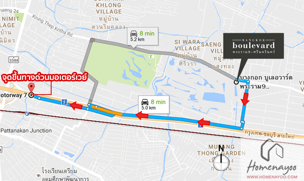 ฝั่งซ้ายมือจะติดกับ Grand Bangkok Boulevard พระราม 9 – ศรีนครินทร์