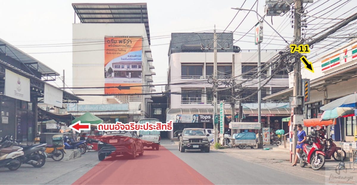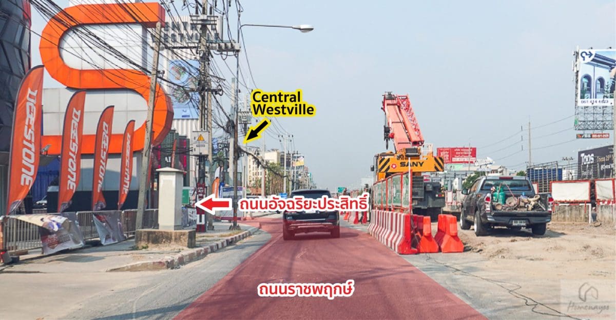 จากนั้นให้เลี้ยวซ้ายเข้าถนนอัจฉริยะประสิทธิ์ ปากทางเป็น Central Westville อยู่ห่างจากโครงการ ประมาณ 2.9 กม.*