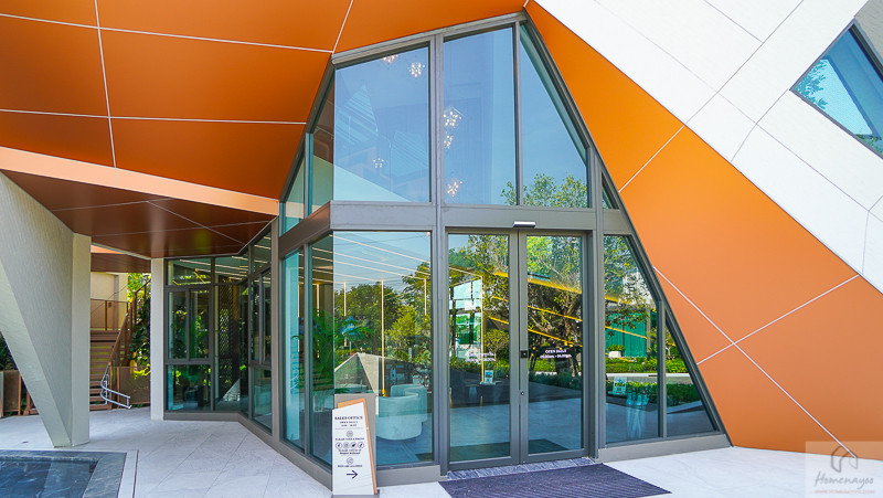 เริ่มจากด้านหน้าโครงการมีซุ้มประตูโครงการดีไซน์มาได้สวย เน้นเส้นสายดู Modern