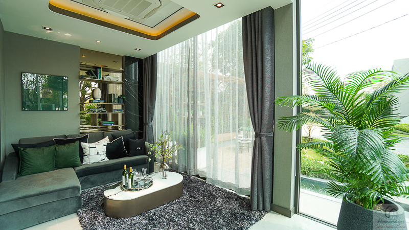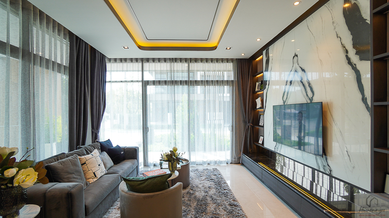 ฟังก์ชันบ้าน 4-5 ห้องนอน, 4-5 ห้องน้ำ, 1 ห้องแม่บ้าน, 2-3 ที่จอดรถ บ้านทุกหลังติดตั้งสัญญาณกันขโมยระบบ Magnetic & Shock Sensor, Smoke & Heat Detector และรองรับ EV Charger โครงการสร้างเสร็จพร้อมอยู่บางส่วน