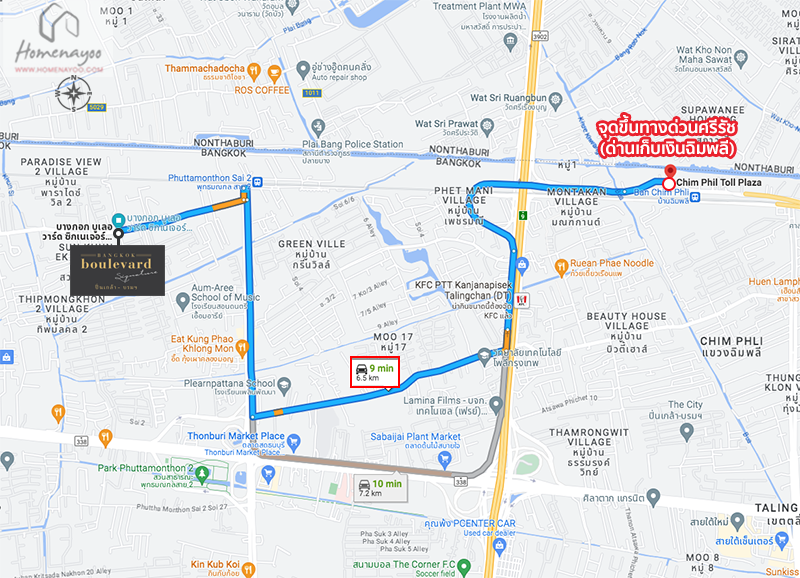 จากนั้นขับต่อมา 800 ม.* ก็จะถึงที่ตั้งของ โครงการ Bangkok Boulevard Signature ปิ่นเกล้า-บรมฯ แล้วค่ะ