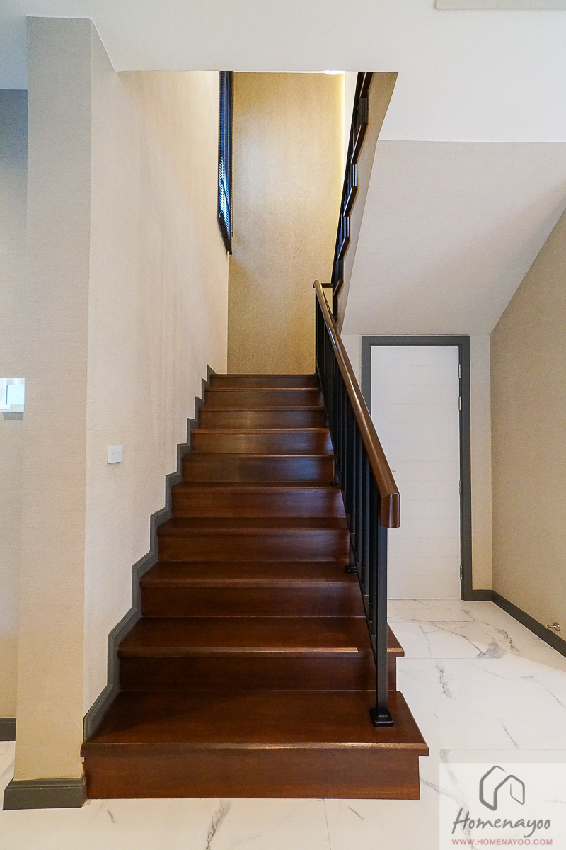 ถัดเข้ามาด้านใน เราจะผ่านบริเวณโถงบันได ตรงนี้มีห้องเก็บของใต้บันได ด้านในติดไฟฟลูออเรสเซ้นท์มาให้ 1 ดวง