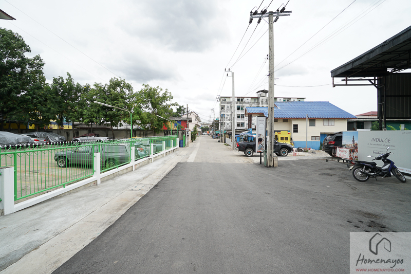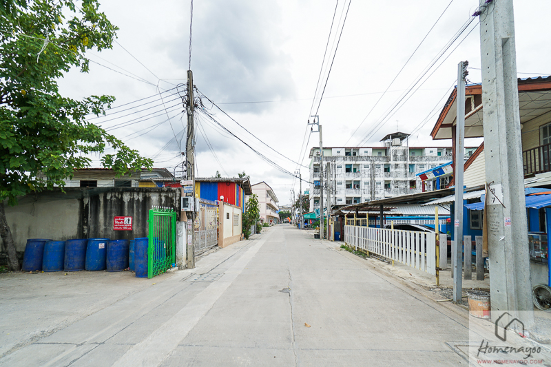 เรามาลองเดินดูบรรยากาศรอบ ๆ โครงการกันบ้างค่ะ เริ่มจากหน้าโครงการจะเป็นถนนซอยสามัคคี 35/1 ที่เชื่อมเข้ามาจากถนนสามัคคี