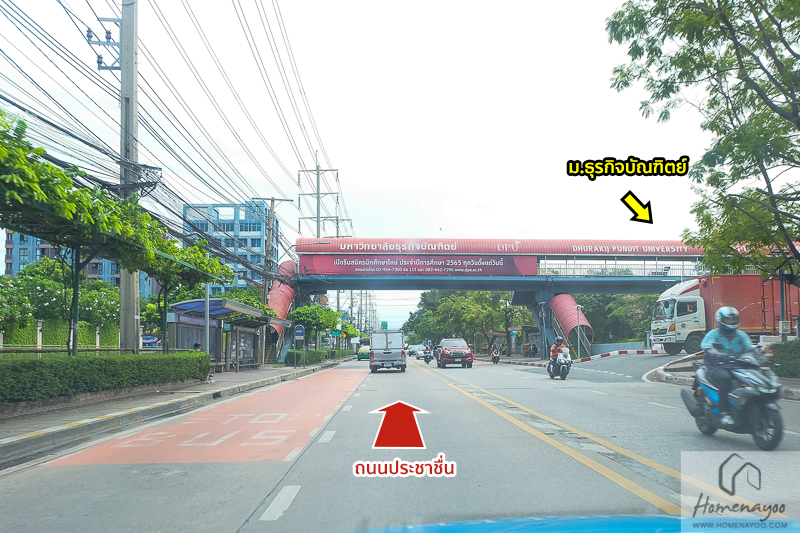 ขับเข้ามาเรื่อย ๆ เราจะผ่าน ม.ธุรกิจบัณฑิตย์ ทางขวามือ
