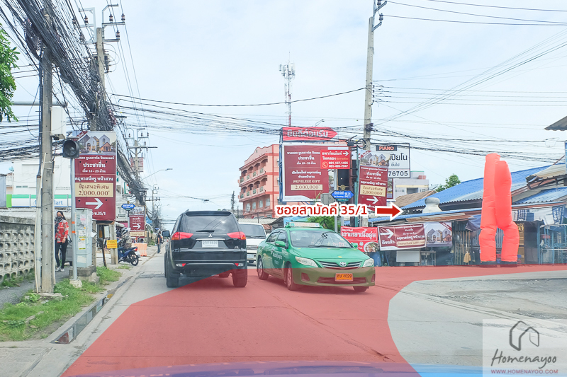 ขับกันมาเรื่อย ๆ เราจะเริ่มเห็นป้ายโฆษณาโครงการระหว่างทาง