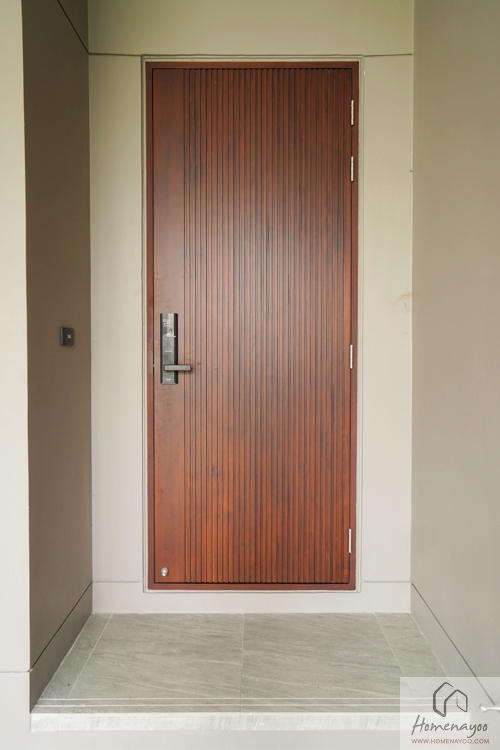 ด้านข้างประตูทางเข้าบ้านฝั่งโรงจอดรถจะมีพื้นที่ทำตู้เก็บของได้ ซึ่งจะเหมาะสำหรับการทำชั้นรองเท้าได้พอดี