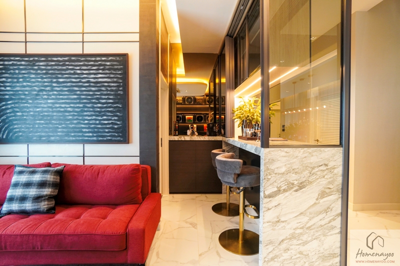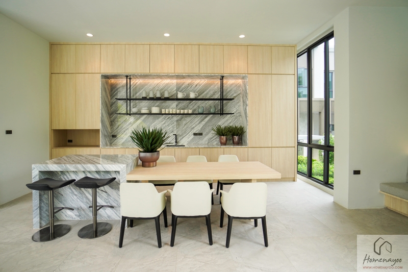 เข้าไปด้านในจะเชื่อมต่อกับ Multi-Purpose Area เป็นมุม Pantry พร้อมโต๊ะทานอาหารและโต๊ะบาร์