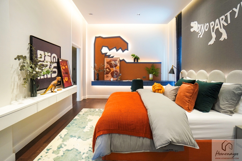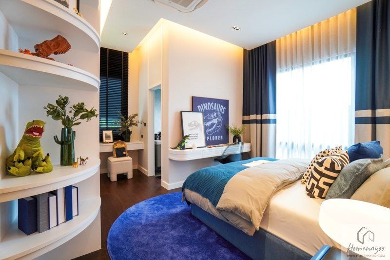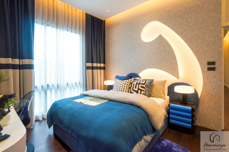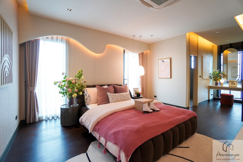 พื้นที่ห้องเหมาะสำหรับเตียงไซซ์ 5-6 ฟุต ฝั่งปลายเตียงเพิ่มชั้นวางของหรือทำเป็นโต๊ะเขียนหนังสือได้