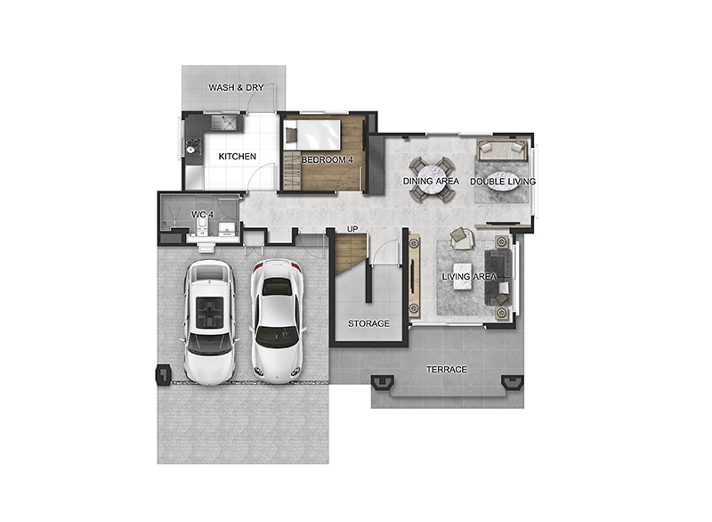 เมื่อเข้าสู่ตัวบ้าน จะเจอ Common Area เป็นห้องนั่งเล่นขนาดใหญ่ เชื่อมต่อไปยังห้องทานอาหาร และห้องอเนกประสงค์ โดยบ้าน Type นี้จะมีความพิเศษที่เตรียมห้องนอนผู้สูงอายุมาให้แล้วพร้อมห้องน้ำในตัวที่มีฟังก์ชันและอุปกรณ์รองรับสำหรับผู้สูงอายุค่ะ