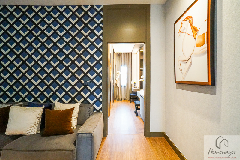 ปลายเตียงมีพื้นที่ให้วางโซฟาไว้นั่งพักผ่อนส่วนตัว หรือใครมีเสื้อผ้าเยอะก็สามารถขยายพื้นที่ตู้เสื้อผ้าออกมาก็ได้นะ