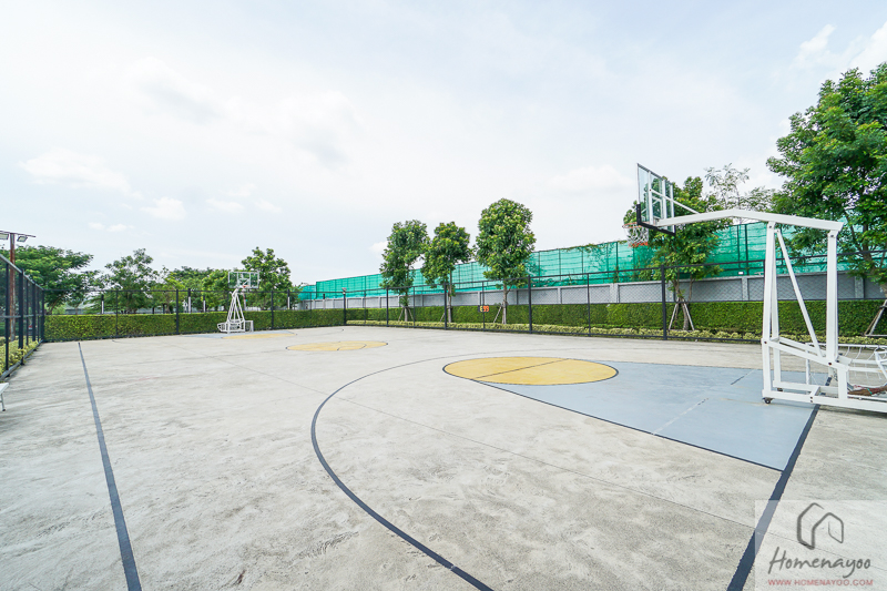ภาพรวมภายใน Sport Complex จะเน้นพื้นที่กิจกรรมขนาดใหญ่ อย่างโซนด้านหน้าจะมีสนามบาส ที่เราสามารถชวนเพื่อน ๆ มาเล่นได้แบบจริงจัง