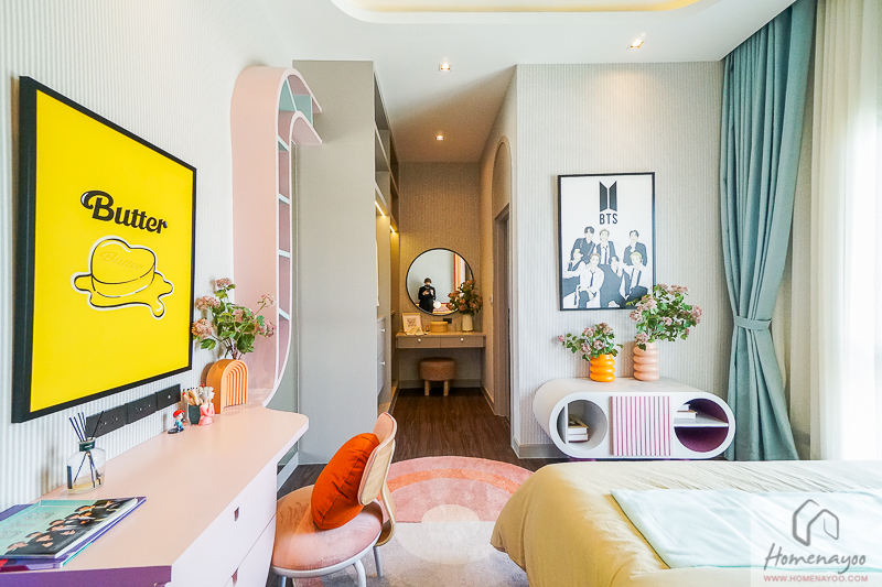 ด้านในมีพื้นที่ Walk-in Closet เป็นสัดส่วน พร้อมช่องแสงช่วยให้เราแต่งหน้า หรือเลือกสีเสื้อผ้าได้ง่ายขึ้น