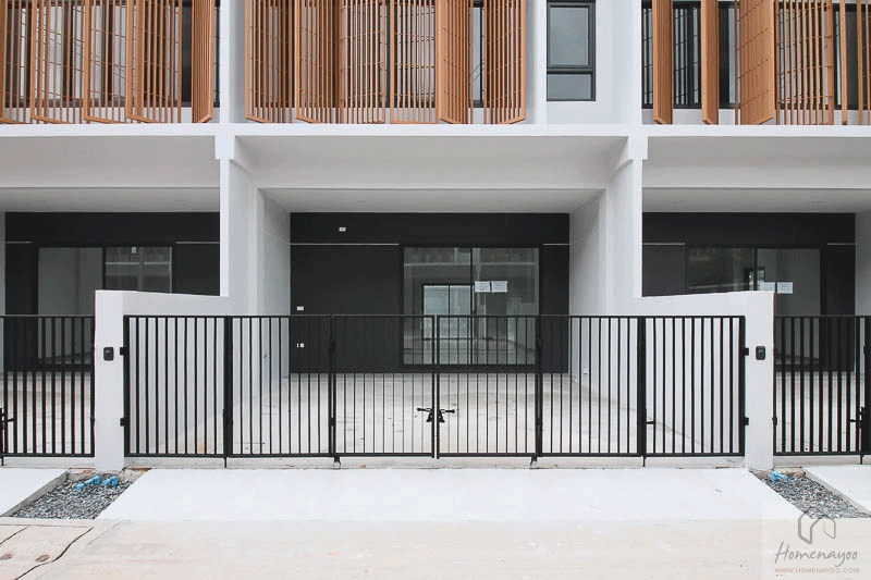 สังเกตจากบริเวณหน้าโครงการจะมีทางเท้าขนาดใหญ่และประตูเล็กให้ลูกบ้านสามารถเดินเข้า – ออกโครงการได้อย่างปลอดภัย